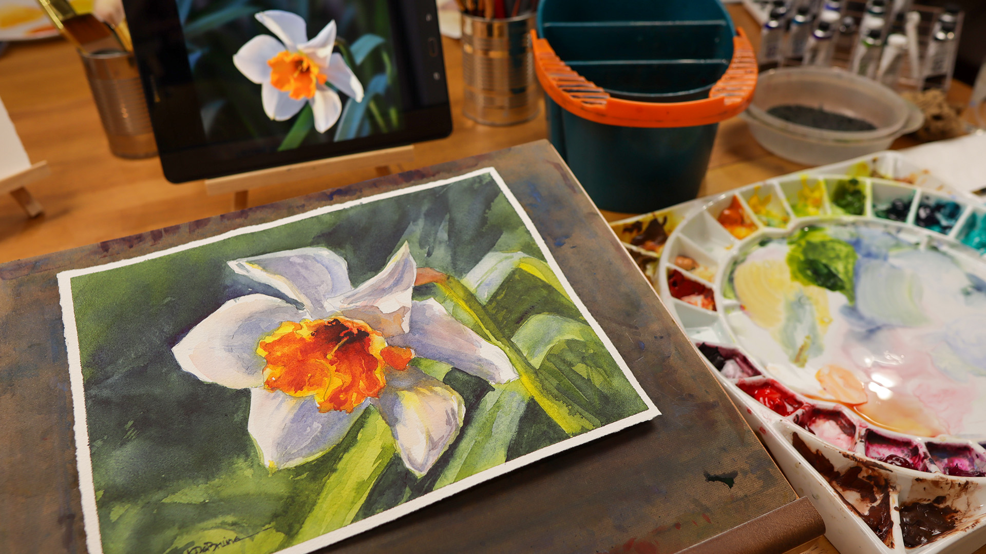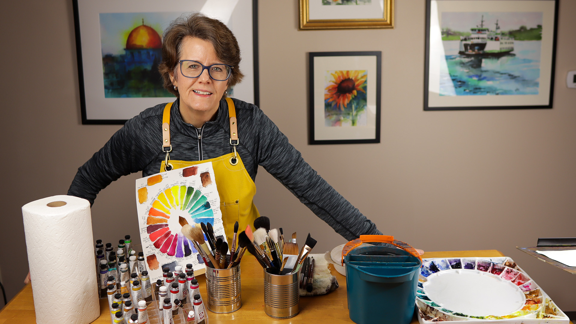 In this free course we will cover the materials, supplies and organization necessary to get started in watercolor. Get answers to your questions about paper, brushes, paints and palettes. See how Kris sets up her creative space.